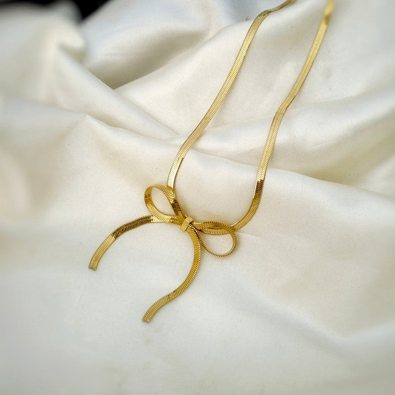 Gold-Plated Anti Tarnish Infinity Bow Choker Necklace