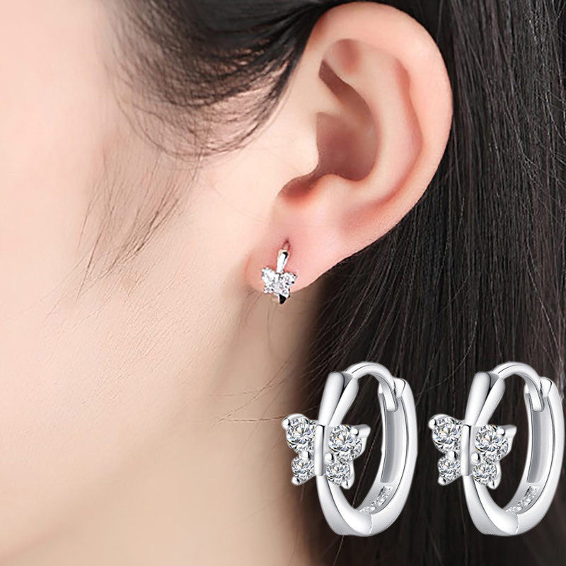 Silver Plated American Diamond Studded Butterfly Shape Korean Hoop Earrings