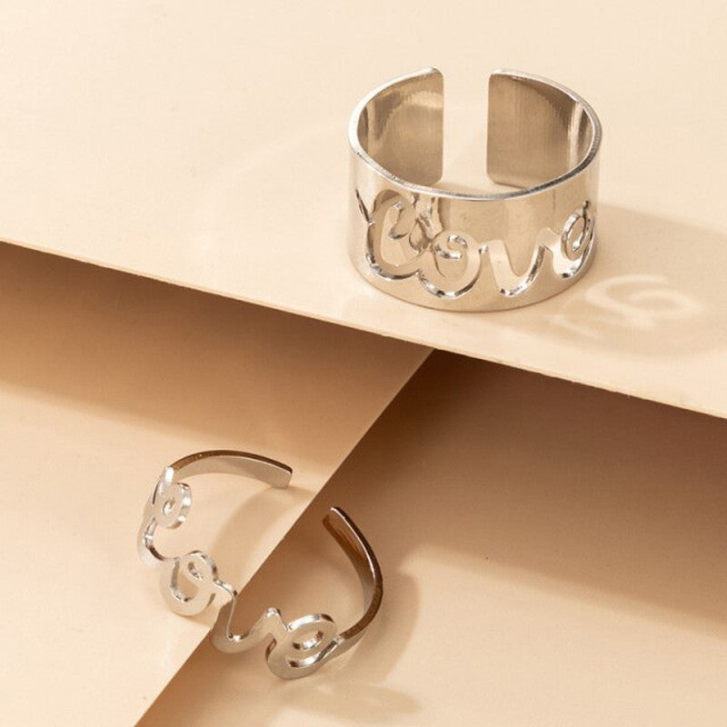 Silver Plated Stackable Love Rings Combo of 2 For Women